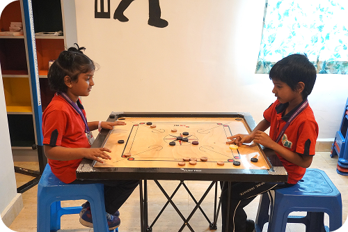 We combine entertainment with skill development through indoor games. Classic games build quick thinking and motor skills, Simon Says enhances listening, and Chess, Carroms fosters strategy and social interaction. Physical activities like indoor obstacle courses boost coordination, while Memory Match sharpens concentration. Together, these activities promote holistic growth in a fun, engaging environment